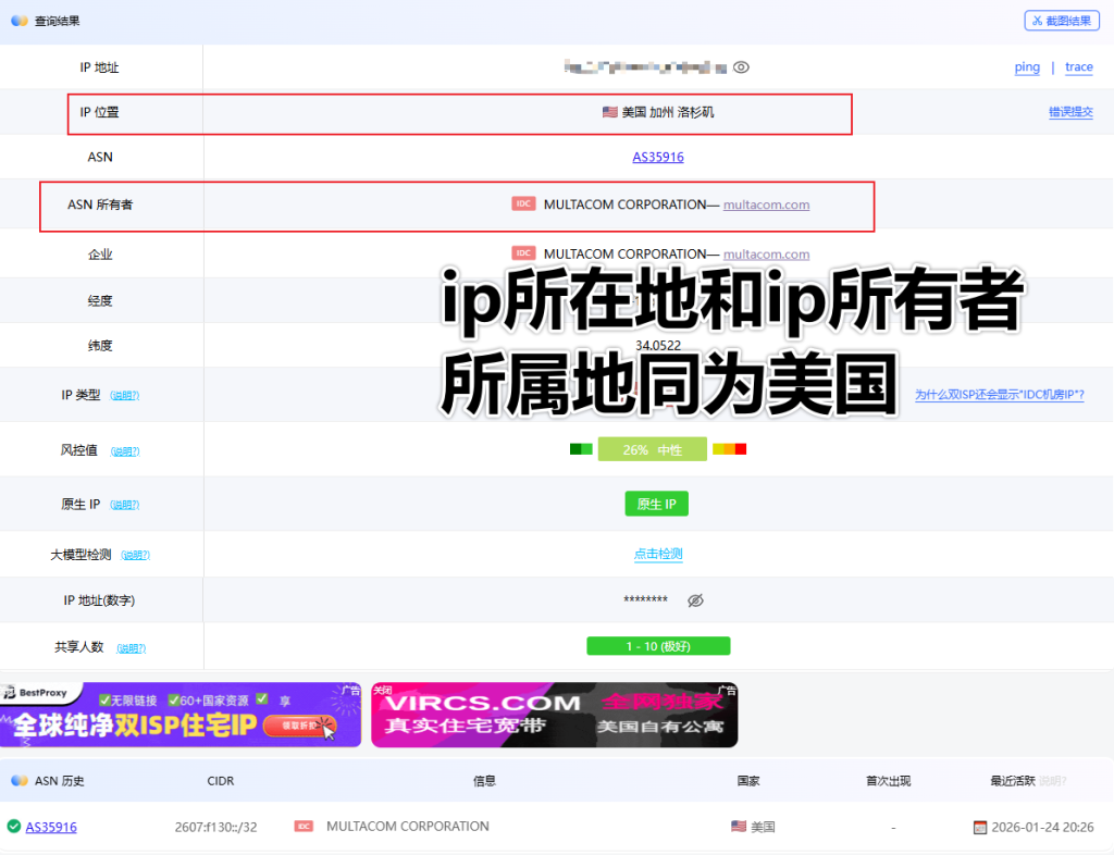 原生ip是指ip的注册地国家(Whois信息)与服务器所在地国家一致,就是原生ip,这是网络身份与地理位置的完美对应。