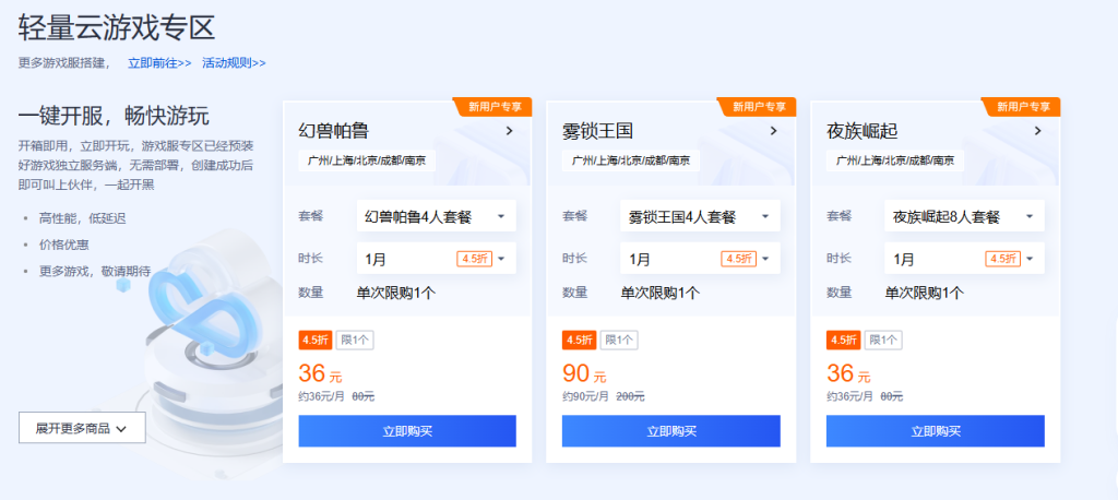 开箱即用,立即开玩,游戏服专区已经预装好游戏独立服务端,无需部署,创建成功后即可叫上伙伴,一起开黑
